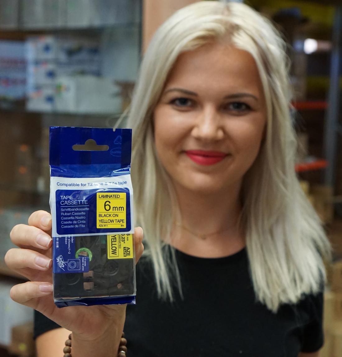 alternativ Brother páska TZE-611 6mm černý tisk/žlutý podklad, laminovaná